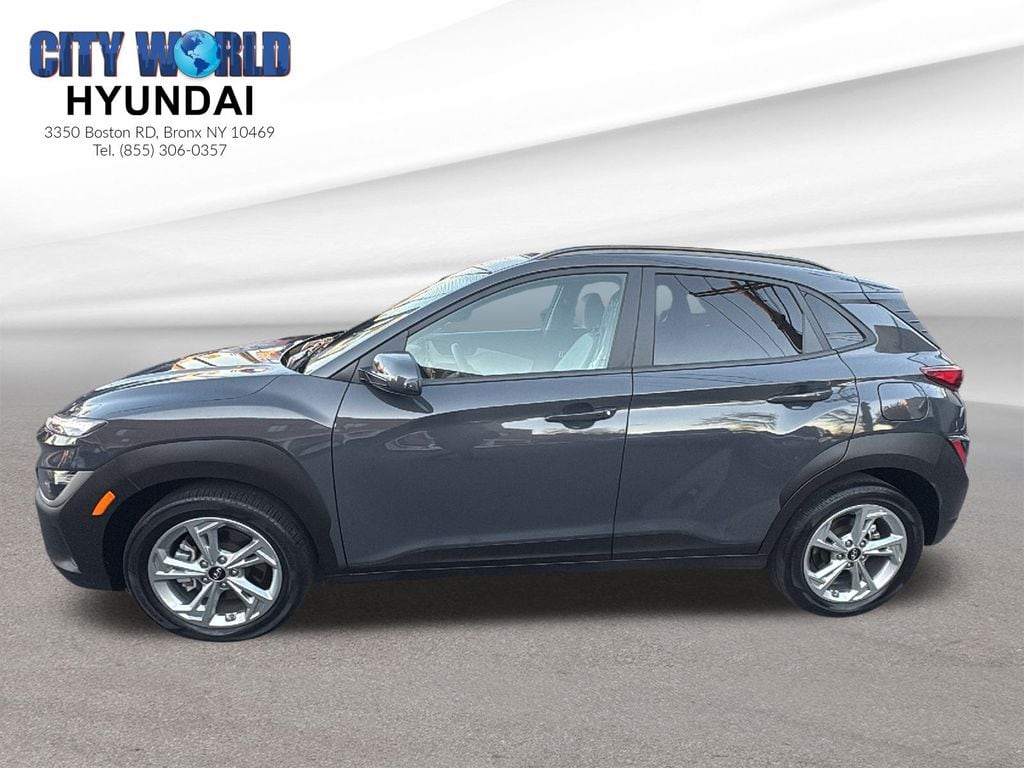 City World Hyundai is proud to present you with another True Market Priced Pre-Owned Vehicle. Priced to sell fast, $175 Doc FEE not included on price, in our location we have full transparent pricing policy, we dont charge any DEALER or PREP FEES. Simply Best price listed online + Taxes based on your registration address and Motor Vehicle. This 2023 Hyundai Kona SEL is loaded with the following Factory Options: Option Group 01, 17" x 7.0J Alloy Wheels, 4-Wheel Disc Brakes, 5.715 Axle Ratio, 6 Speakers, ABS brakes, Air Conditioning, Alloy wheels, AM/FM radio: SiriusXM, Apple CarPlay & Android Auto, Brake assist, Bumpers: body-color, Cargo Net, Cargo Tray, Carpeted Floor Mats, Cloth Seat Trim, Delay-off headlights, Driver door bin, Driver vanity mirror, Dual front impact airbags, Dual front side impact airbags, Electronic Stability Control, Emergency communication system: Blue Link Connected Car Service (3-year complimentary subscription), Exterior Parking Camera Rear, Four wheel independent suspension, Front anti-roll bar, Front Bucket Seats, Front Center Armrest, Front reading lights, Fully automatic headlights, Heated door mirrors, Illuminated entry, Low tire pressure warning, Occupant sensing airbag, Outside temperature display, Overhead airbag, Overhead console, Panic alarm, Passenger door bin, Passenger vanity mirror, Power door mirrors, Power driver seat, Power steering, Power windows, Radio: AM/FM/HD/SiriusXM Audio System, Rear anti-roll bar, Rear seat center armrest, Rear window defroster, Rear window wiper, Remote keyless entry, Roof Rack Cross Rails (DISC), Security system, Speed control, Speed-sensing steering, Split folding rear seat, Spoiler, Steering wheel mounted audio controls, Tachometer, Telescoping steering wheel, Tilt steering wheel, Traction control, Trip computer, Turn signal indicator mirrors, and Variably intermittent wipers!!